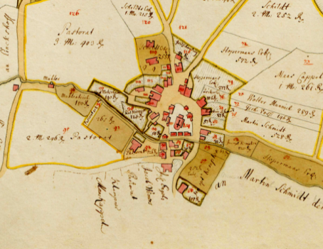 Das preußische Urkataster von 1735 nennt die Unterabteilungen Dahlhäuser Bauernschaft, Steingründer Bauernschaft, Oberbauernschaft und Dorf. 100 Jahre später ging aus der Dahlhäuser und Steingründer