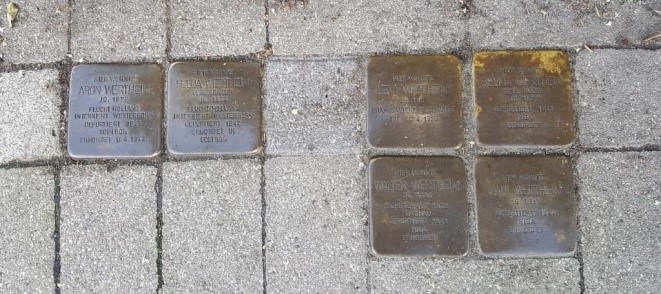 Mit den Stolpersteinen in Brünen wird an die ehemaligen Bewohner dieses Hauses, Familie Wertheim erinnert: